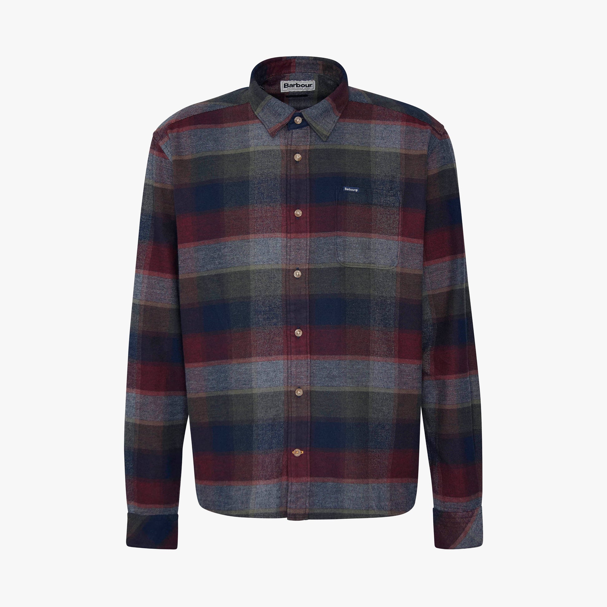 Barbour and shield branded label positioned to top left of wearers chest pocket.